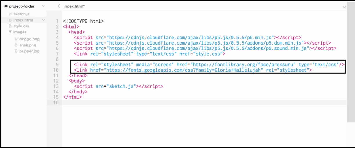 **We then paste the embed link into the head section of our sketches' index.html file:**